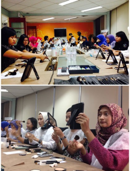 Make-up class pertama untuk tim Detikcom ini berjalan cukup seru, karena kebanyakan dari kami masih kaku dalam merias diri. Untungnya, kelas make-up dipandu oleh trainer profesional dari Misslyn yang turut membawa tim make-up artist lainnya untuk membantu kami dalam menerapkan riasan.