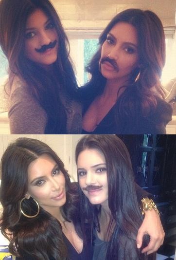 Dalam fotonya tersebut, Kim tampak berpose dengan saudara tirinya, Kendall dan Kylie Jenner. Dalam foto pertama, Kim berpose bersama Kendall yang berkumis. Ia sendiri belum ikut tampil dengan kumis.