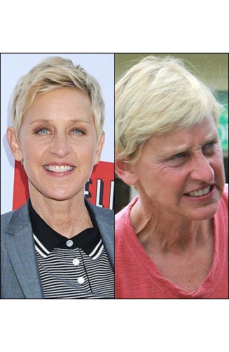 Istri dari aktris Portia de Rossi ini terlihat kurang fresh akibat terlalu banyak paparan sinar matahari dan tidak menghidrasi kulit wajahnya dengan pelembab. Alhasil wajahnya memperlihatkan banyak garis kerut yang jelas saat berekspresi.