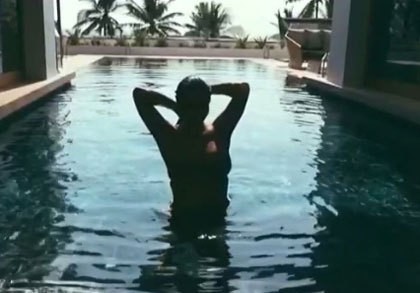 Pada video kedua, tunangan Kanye West itu terlihat lebih seksi. Dia keluar dari kolam renang dengan mengangkat kepalanya dan melemparkan rambutnya ke belakang. "I'm in it," begitu tertulis pada caption video tersebut.
