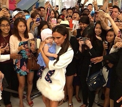 Vic juga berpose bersama para fans sambil menggendong bayi salah satu penggemarnya. Ia tampak tersenyum menggendong anak perempuan dalam busana biru dan topi kecil yang lucu. Bukti kegembiraan istri pesepakbola David Beckham itu kemudian ditunjukkan melalui foto yang sengaja di-posting di Twitter. Vic pun berterima kasih karena telah mendapat sambutan yang baik selama di Singapura.