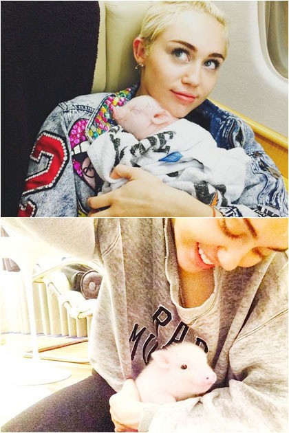 Foto: Ketika Miley Cyrus Jatuh Cinta Pada Seekor Babi
