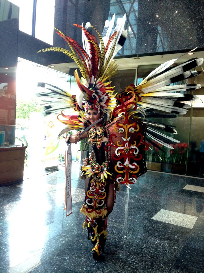 Busana yang dihiasi bulu burung Enggang tersebut mampu membuat para juri serta penonton terpesona dengan detail dan potongannya. Tambahan tameng serta mandau atau pisau yang biasa dipakai oleh masyarakat Dayak membuat penampilan Lily semakin memukau. Wanita 21 tahun ini juga bercerita kalau kostum nasional seberat 17 kilogram itu dibanjiri banyak pujian dari teman-temannya.