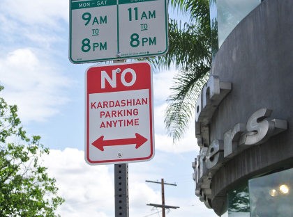 Kemunculan Kim Kardashian dan keluarganya di kawasan Hollywood hingga menyebabkan kemacetan menggelitik seorang seniman asal Inggris. Dia pun membuat tanda rambu lalu-lintas baru yang menyatakan bahwa keluarga Kardashian dilarang parkir di tempat-tempat yang memiliki tanda buatannya itu.