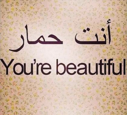 Pada foto yang dipamerkannya tertulis kalimat 'anta hamar' dalam huruf Arab. Di bawah kalimat itu ada juga kalimat terjemahan dari tulisan Arab tersebut yang tertulis: you're beautiful.