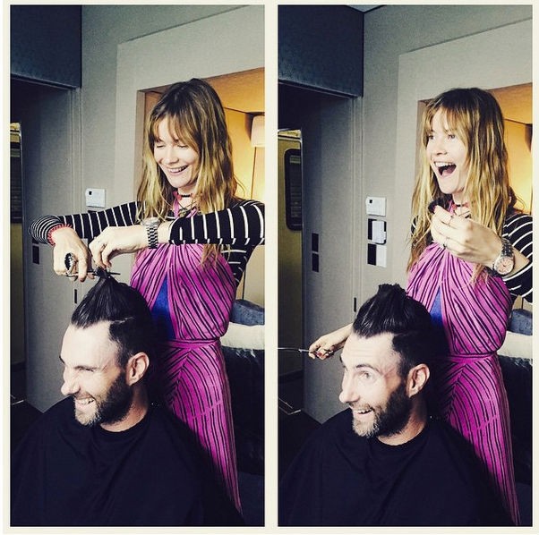 Adam Levine mendapat potongan rambut baru dan ia tidak melakukannya sendirian. Vokalis dari band Maroon 5 itu bahkan tak perlu ke salon, melainkan mempercayakan model rambut barunya pada...istrinya, Behati Prinsloo.