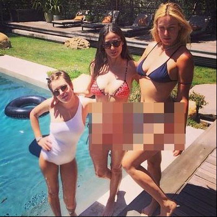 Pose bikini Demi dan kedua putrinya, Tallulah dan Scout Willis diunggah ke Instagram pada Minggu (21/6/2015). "When you can’t be with the papa…#freeslw #POOLPARTY #mymomsbodtho," demikian tulis Tallulah pada keterangan fotonya.