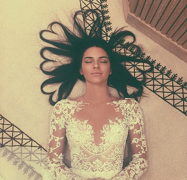 Dalam fotonya, Kendall terlihat cantik berbaring dengan mata tertutup dan memakai gaun lace putih dan ujung rambut dibentuk hati. Sementara foto Kim yang paling banyak disukai adalah foto pernikahan romantis ketika bintang realiti 34 tahun itu berciuman dengan suami barunya Kanye di tahun 2014 lalu.