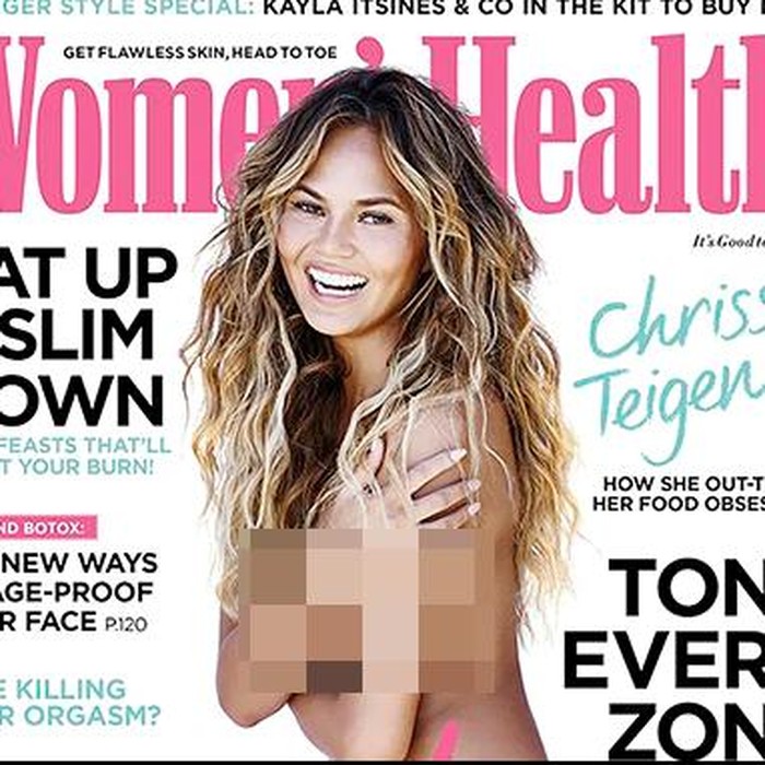 Top model Amerika, Chrissy Teigen berpose tanpa busana di sampul majalah wanita terbitan Inggris. Istri penyanyi John Legend itu menutupi payudaranya dengan kedua tangannya dan berbagi rahasia caranya menjaga berat badannya.