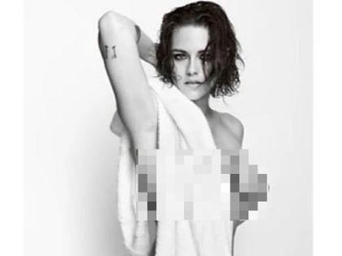 "TOWEL SERIES 91, KRISTEN STEWART. #MarioTestino #TowelSeries," demikian keterangan yang ditulisnya pada foto Kristen berpose tanpa busana dan menutupi tubuhnya dengan sehelai handuk berwarna putih.