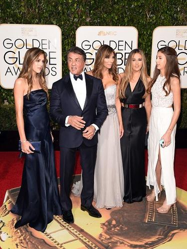 Aktor lawas Sylvester Stallone adalah satu dari banyaknya bintang Hollywood yang menghadiri ajang Golden Globe Awards ke-73 di Beverly Hilton, Los Angeles, California, AS, Minggu (10/1/2016) malam. Dinominasikan sebagai aktor pendukung terbaik untuk perannya di film 'Creed', pria 69 tahun itu tidak hadir sendiri. Ia didampingi istrinya, Jennifer Flavin, dan ketiga putrinya yang cantik.