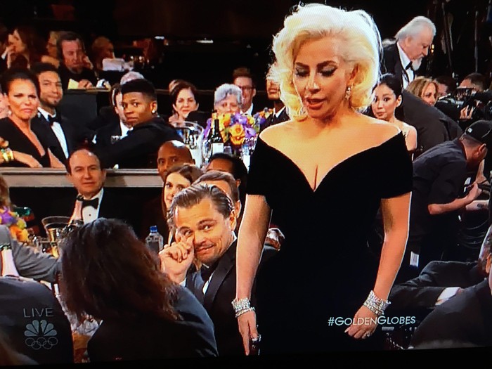 Gaga sendiri tidak menyadari kalau DiCaprio memberikan reaksi tersebut. Penyanyi 29 tahun itu terlalu bahagia karena bisa berprestasi di ajang bergengsi seperti Golden Globes.