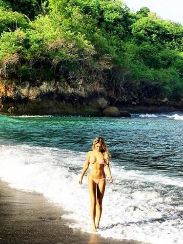Janda pesepakbola Rafael van der Vaart itu juga unjuk foto berbikini di antara belaian halus ombak putih dengan latar belakang pulau yang seolah tak berpenghuni.