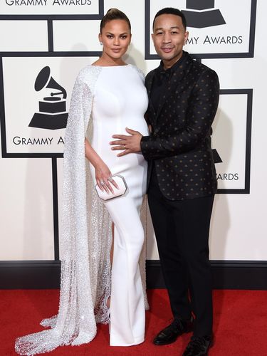 Grammy tahun ini menjadi momen spesial bagi John dan Chrissy. Inilah Grammy pertama mereka sebagai calon ayah dan ibu. Tengah mengandung buah hati pertamanya, Chrissy tampil anggun dengan gaun putih body-fit karya Yousef Al-Jasmi yang berhiaskan cape panjang. Sang model terlihat percaya diri meski perutnya kian membesar. Adapun sang suami mengenakan setelan hitam bermotif keemasan.