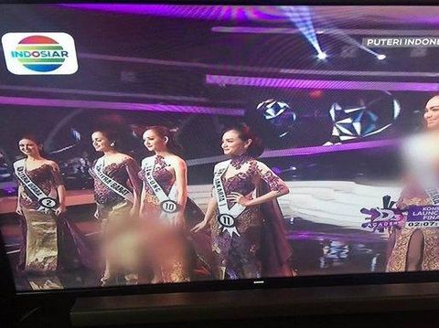 Penyensoran berupa pemburaman pada bagian dada dan belahan rok kebaya itu terlihat saat siaran ulang acara tersebut, Minggu (21/2/2016). Kebaya yang terkena sensor di antaranya adalah kebaya rancangan Intan yang membaluti tubuh lima besar finalis.