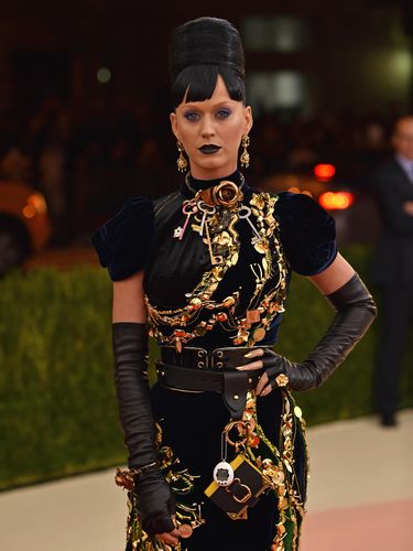 Penampilan Katy sendiri saat tiba di Met Gala nyaris tak dikenali. Dia memulaskan eyeshadow ungu, eyeliner biru di bagian bawahnya, serta lipstik hitam. Alisnya dibentuk dengan warna yang sangat terang sehingga terlihat transparan, serta rambutnya dicepol tinggi ke atas seperti sarang lebah.