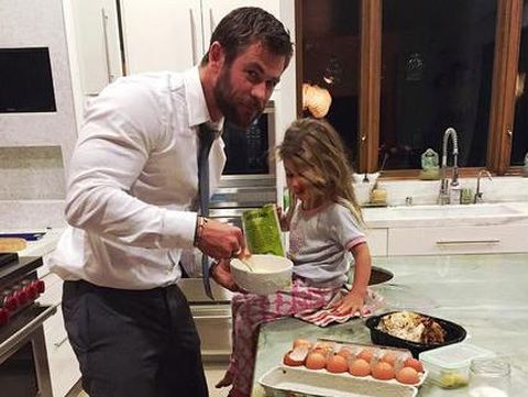 Elsa Pataky kembali mengunggah foto yang membuat penggemar wanita Chris semakin jatuh hati pada aktor 32 tahun itu. Foto memperlihatkan bintang 'The Avengers' itu itu masih memakai baju formal, tengah mempersiapkan masakan di dapur bersama putri sulungnya, India. Dari keterangan foto yang ditulis Elsa diketahui, Chris menyempatkan diri membuatkan camilan untuk putrinya di saat dia baru pulang dari premier film Snow White and the Huntsman.