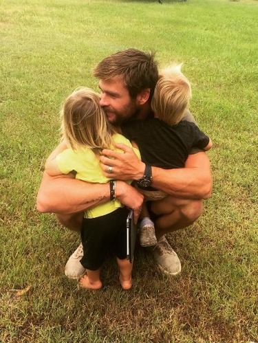 Foto ini diunggah oleh Elsa Pataky ke akun Instagramnya. Foto memperlihatkan Chris memberikan pelukan hangat pada sepasang anak kembarnya, Sasha dan Tristan. Keduanya berulang tahun yang ke-2 pada Maret 2016 kemarin.