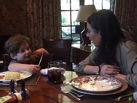 Duduk di meja makan sambil makan jagung, si anak mulai 'mewawancarai' Kim dengan bertanya kenapa bintang Keeping Up With the Kardashian itu bisa ada di sampul majalah. "Aku tidak tahu, karena aku suka majalah," katanya berpura-pura polos.