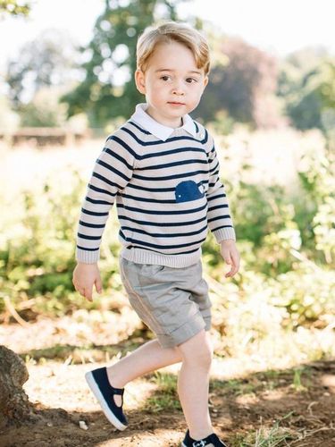Foto pertama memperlihatkan foto Pangeran George yang tengah berjalan di taman. Menggunakan sweater motif garis, celana pendek dan sepatu, bocah berambut pirang itu tampak menggemaskan.