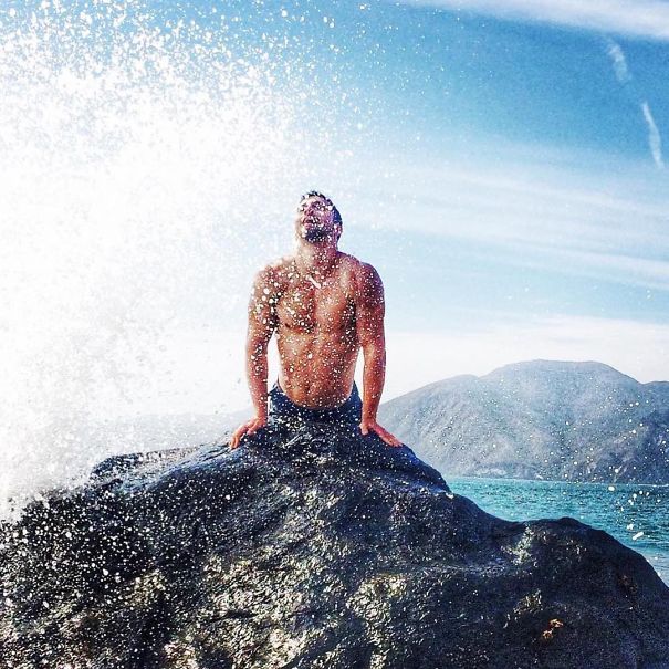 Cipratan ombak di batu karang membuat foto makin dramatis. Foto pun terlihat makin cantik ketika seorang wanita duduk di atasnya bagai putri duyung. Tapi pria tidak mau kalah dan mengeluarkan sisi duyung dalam dirinya.