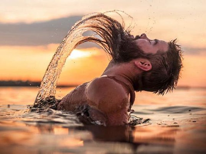Jika biasanya wanita mengibaskan rambut panjang mereka di air dan membuat foto yang indah, foto berikut juga tak kalah bagusnya. Tapi bukan rambut panjang yang jadi fokusnya, melainkan janggut panjang.