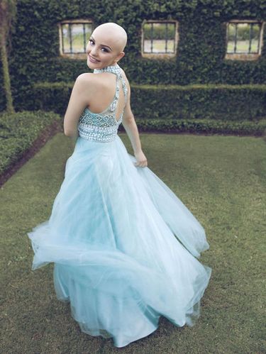 Foto Andrea Sierra Salazar kini menjadi viral. Penampilannya tanpa rambut alias botak dengan gaun bagaikan putri raja membuat banyak orang jatuh hati padanya.