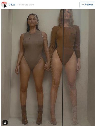 Majalah asal Jerman itu mem-posting foto di Instagram yang memperlihatkan Kim dan Khloe berpose seduktif, berbalut busana dari koleksi Yeezy rancangan Kanye West. Dua foto yang diposting, memperlihatkan dua bersaudari itu mengenakan pakaian minim dengan warna-warna netral dan pucat seperti beige, cokelat, abu-abu dan krem.