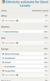 Jumat (24/2/2017) lalu, penyanyi 25 tahun ini mengumumkan hasil tes DNA yang baru saja dijalaninya lewat Twitter. Hasil tes DNA tersebut menyatakan kalau Demi memiliki banyak darah campuran. Ia ternyata berdarah mayoritas Spanyol, Amerika, Skandinavia, Irlandia, Inggris dan 1% Afrika.