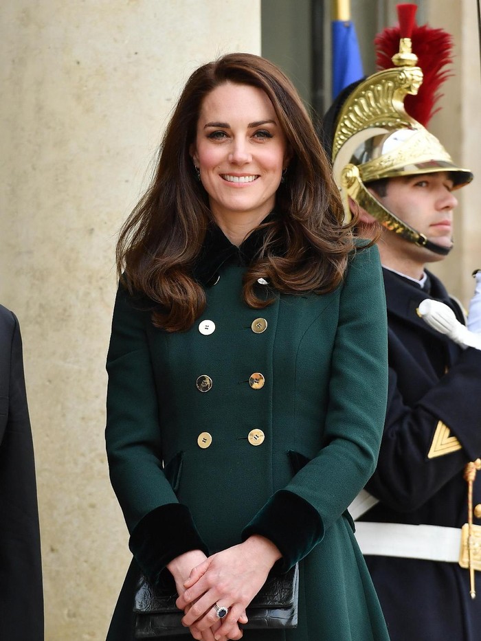 Sebelum bertolak ke Paris, Jumat (17/3/2017) pagi Kate Middleton dan Pangeran William sempat hadir di acara St. Patrick's Day dalam rangka mengenang para pejuang Irlandia di London, Inggris. Mereka kemudian langsung terbang ke Paris. Tiba di Paris, tampak Kate masih mengenakan busana yang sama dengan pagi tadi, hanya tatanan rambutnya saja yang berbeda. Kate mengenakan coat hijau dari Catherine Walker. Dia selalu melemparkan senyum di samping Pangeran William. Padahal, isu perselingkuhan William dengan model asal Australia tengah ramai diberitakan.