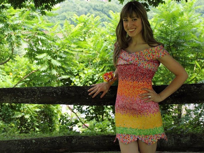 Sebagian orang mungkin tak pernah berpikir kalau bungkus permen dapat dijadikan suatu karya seni yang indah. Namun ide dan kreativitas Emily Seilhamer ini dapat menjadi bukti bahwa bungkus-bungkus permen bisa menciptakan gaun yang indah.