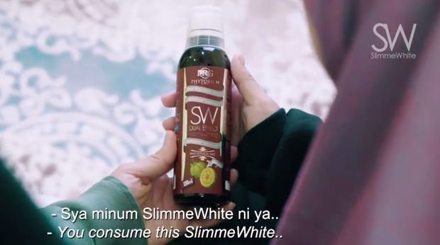 Pada adegan lain, diceritakan istri yang dipanggil Sya itu pindah dan tinggal bersama kakak perempuannya. Lalu sang kakak menyarankan Sya untuk minum sebotol SlimmeWhite.