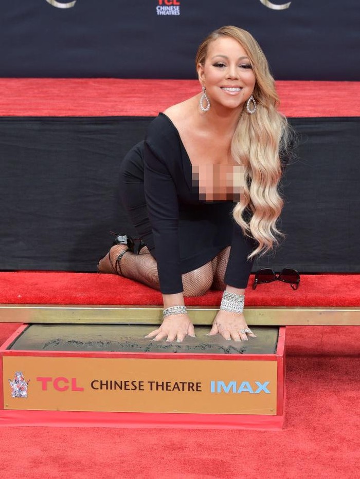 Pelantun 'Hero' itu merasa tidak keberatan untuk membuat kaki dan tangannya kotor. Mariah Carey yang datang mengenakan dress hitam dengan belahan dada rendah bahkan duduk bersimpu menggunakan lututnya saat menyelupkan kedua telapak tangan ke kotak semen tersebut.