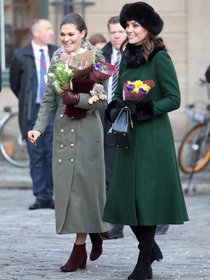 Sementara Kate Middleton tetap memakai coat warna burgundy Dolce & Gabbana miliknya. Kancing-kancing coat itu juga masih tertutup.