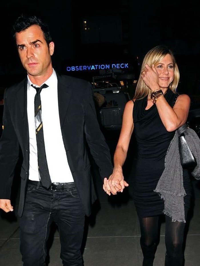 1. Tangan Jennifer Aniston di Atas Bahu Justin Theroux