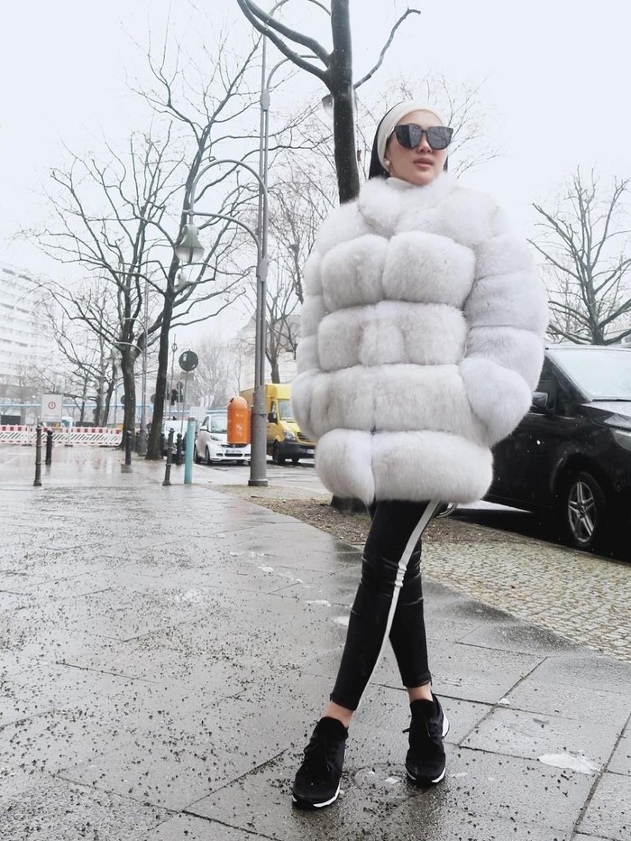 Saat berpose di trotoar di Jerman itu, Syahrini mengenakan coat bulu berwarna putih dari brand teman dekatnya yang tinggal di Belanda, by.lauyaju. Coat seri The Nayhla itu dijual di situs resmi brand tersebut seharga 600 Euro atau sekitar Rp 10 jutaan. Dia juga melengkapi gayanya dengan sneakers hitam Chanel seharga Rp 15 jutaan.