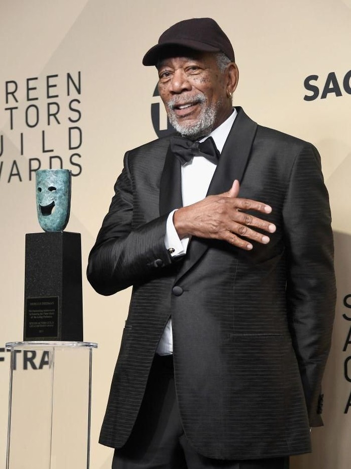 Morgan Freeman menerima penghargaan seumur hidup di Screen Actors Guild Awards 2018. (Foto: Getty Images)