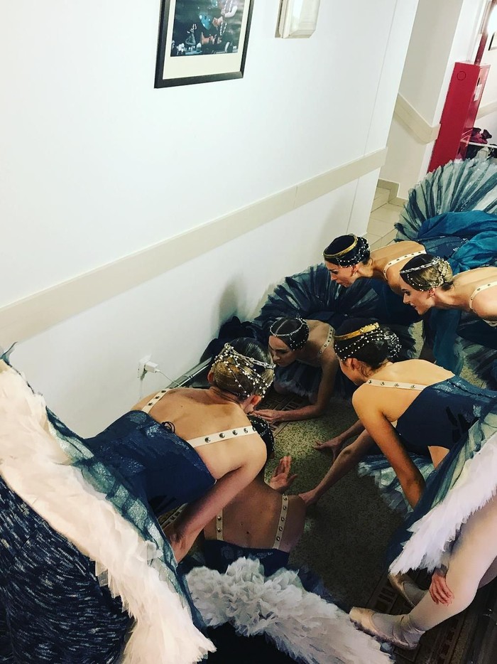 Sebuah foto viral memperlihatkan aksi sejumlah balerina yang sudah memakai kostum menari mereka berkumpul di belakang panggung. Sebagian dari mereka ada yang duduk di lantai, sebagian lagi berdiri sambil membungkukkan badan. Perhatian para balerina ini tertuju pada satu titik yaitu layar ponsel yang tengah di-charge.