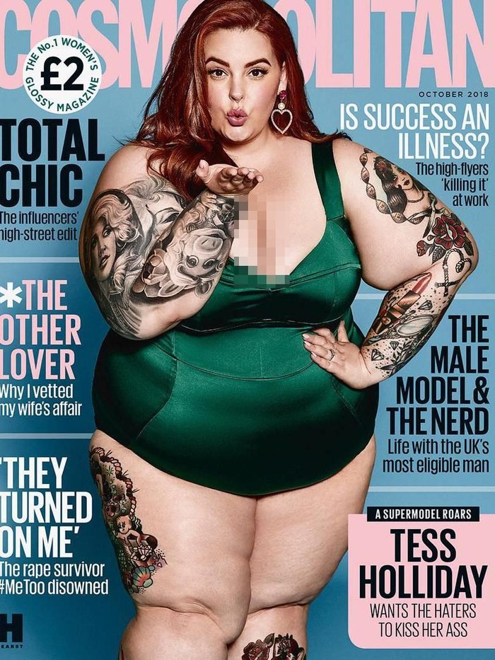 Tess Holliday menjadi model plus size pertama yang tampil di sampul majalah Cosmopolitan. Wanita 33 tahun yang mengaku bajunya berukuran 22 ini pun merasa terhormat bisa muncul di salah satu media gaya hidup ternama dunia.