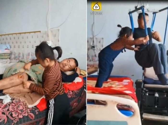 Sulit dipercaya bahwa bocah enam tahun bisa mengurus dirinya sendiri, terlebih ayahnya yang lumpuh, tetapi gadis kecil ini adalah bukti nyata bahwa itu mungkin. Pada video yang viral, gadis kecil ini terlihat merawat luka ayahnya, membantunya naik ke kursi roda, membantu makan dan bahkan tidur.