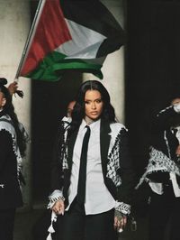 Dalam foto yang beredar, para pendemo, termasuk Ramona, kompak mengenakan keffiyeh saat menyerukan dukungan mereka. Beberapa orang juga memasang bendera Palestina hingga menyerukan 'Free Palestine'.