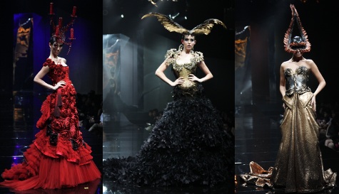 Desainer yang mengidolakan Alexander McQueen ini sepertinya benar-benar terinspirasi dari sang idola. Permainan print dan terusan struktural mengingatkan pada koleksi musim semi dan panas tahun 2010 dari McQueen. Yang menjadi bintang pada koleksi Hian adalah busana dari materi logam warna tembaga yang menyerupai bentuk binatang.