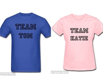 Kali ini giliran kasus perceraian Katie Holmes dan Tom Cruise. Seperti yang dikutip dari Daily Mail, situs online bernama spreadshirt, menjual kaus berwarna pink yang bertuliskan 'Team Katie', dan kaus biru dengan tulisan 'Team Tom'. Bahkan website tersebut menuliskan tagline 'Show your support for Katies with our Team Katie T-shirt'.