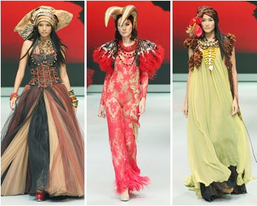 Pertunjukan yang diadakan di Jakarta Convention Center, Kamis (14/2/2013) malam ini dibuka dengan show dari Melinda Looi yang bertajuk 'Sunset of Africa'. Mengambil inspirasi dari tanah Afrika, karya Melinda didominasi warna cokelat, marun, oranye, dan ungu.