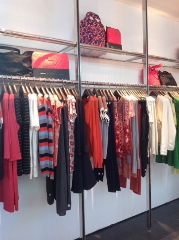 Di sampingnya, ada pula beberapa wewangian seperti Daisy By Marc Jacobs. Koleksi busana terbaru mereka sarat akan konsep color blocking dan warna neon yang khas musim panas. Semua tersusun rapih mengelilingi toko.