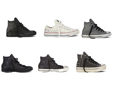 Mulai dari sepatu kanvas hingga kulit, semuanya bertabur paku-paku atau stud. Beberapa diantaranya bahkan dibuat dengan teknik washed agar terkesan lusuh, seperti sepatu lama. Converse juga menampilkan koleksi klasik mereka dari kanvas putih, dengan list biru dan merah. Di bagian belakang sepatu itu diberi stud hingga bagian sampingnya. Ada pula sneaker hitam dengan retsleting di sampingnya, dan sol yang dibuat tebal.