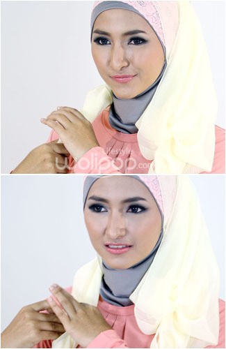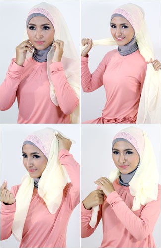 4. Tarik sisi jilbab kiri ke atas kepala