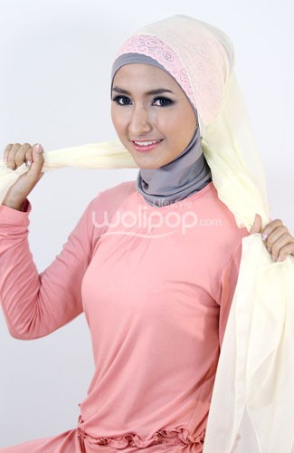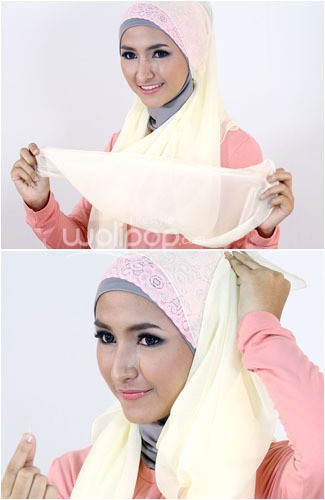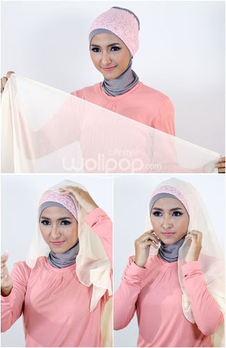1. Tambahkan bandana brokat di atas ciput ninja