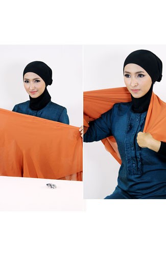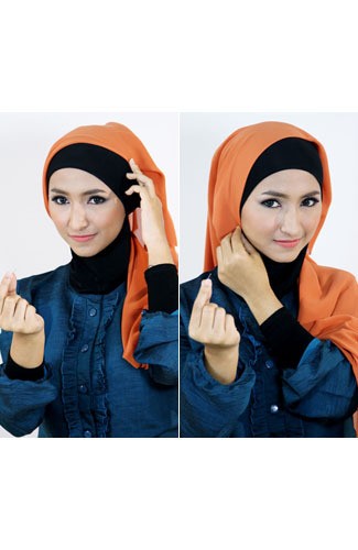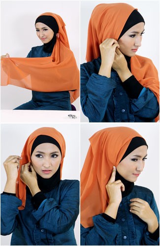 3. Silangkan sisi kanan jilbab ke kiri atas