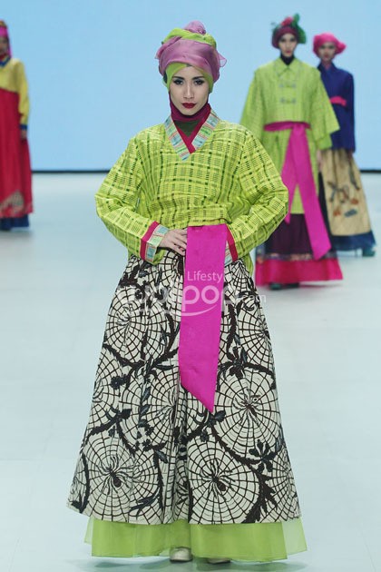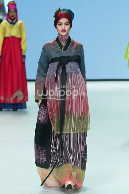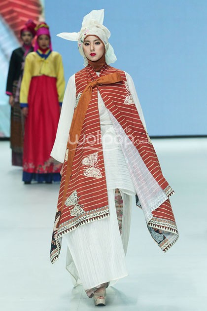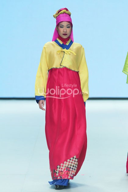 "Baju korea sangat Islami, tertutup, lalu baju korea ini dicampurkan dengan batik. Scarf, motif, semua pakai batik cuma style-nya Korea," tutur Iva saat diwawancara Wolipop usai konferensi pers di Jakarta Convention Center (JCC), Jakarta Selatan, Jumat (21/2/2014).